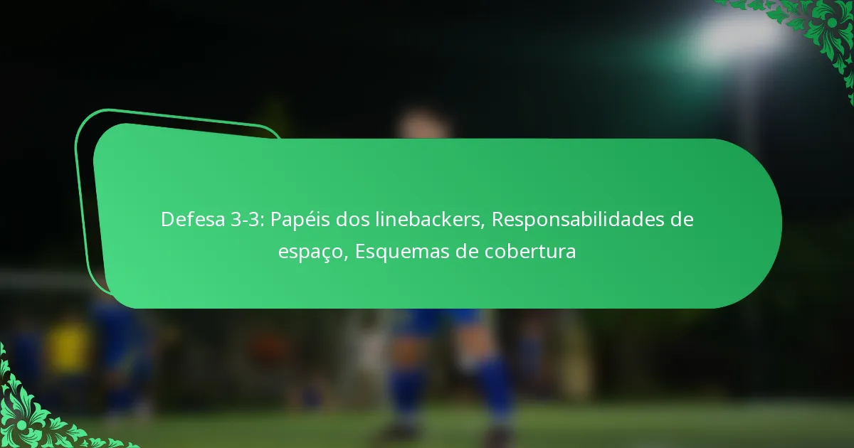 A Defesa 3-3 é uma formação de futebol que utiliza três jogadores da linha defensiva e três linebackers, projetada para proporcionar flexibilidade contra tanto a corrida como o passe. Este esquema enfatiza o controlo de gaps e opções de cobertura versáteis, tornando-o eficaz para várias estratégias ofensivas.